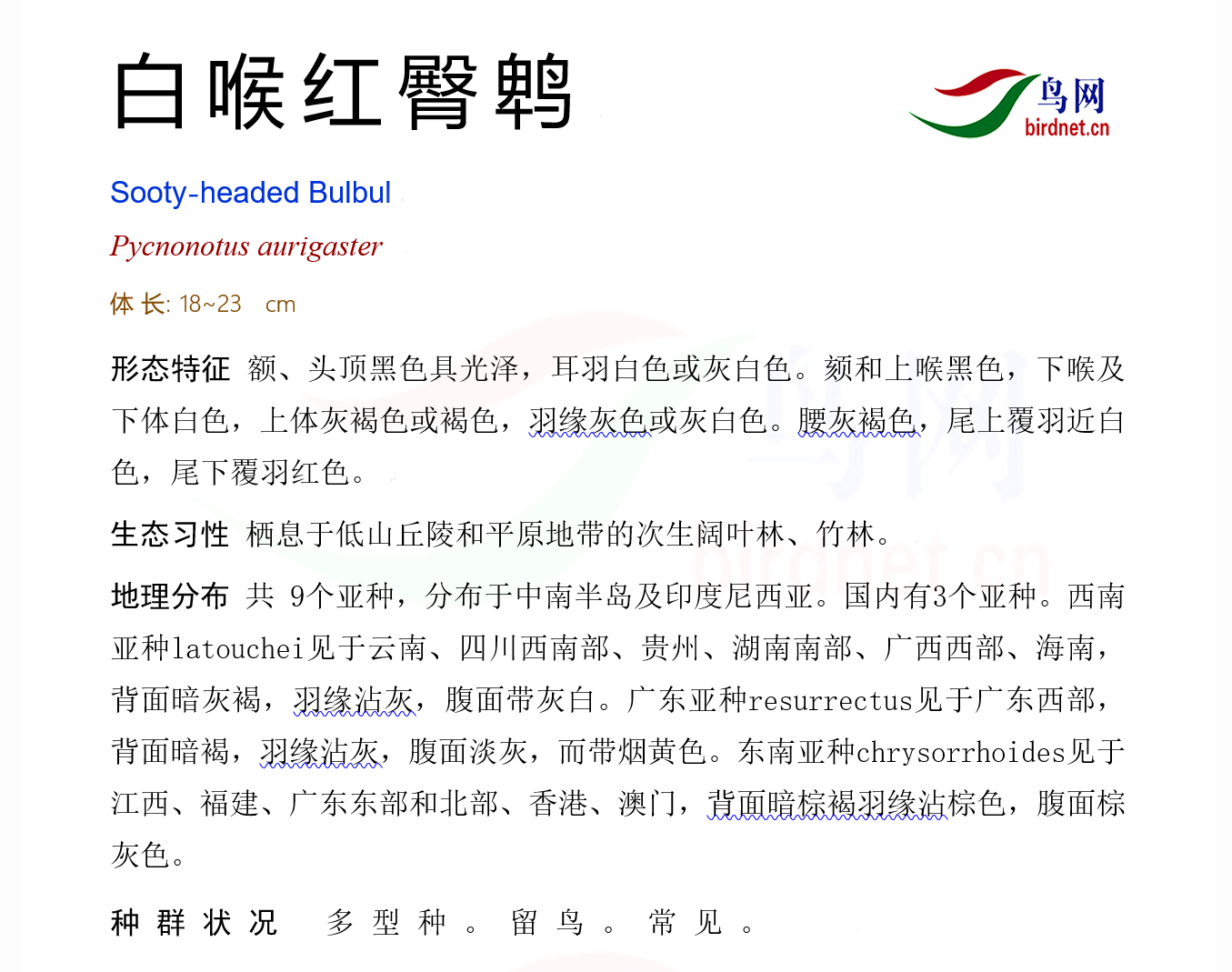 本页面展示的鸟种描述和分布图片等内容均来源于