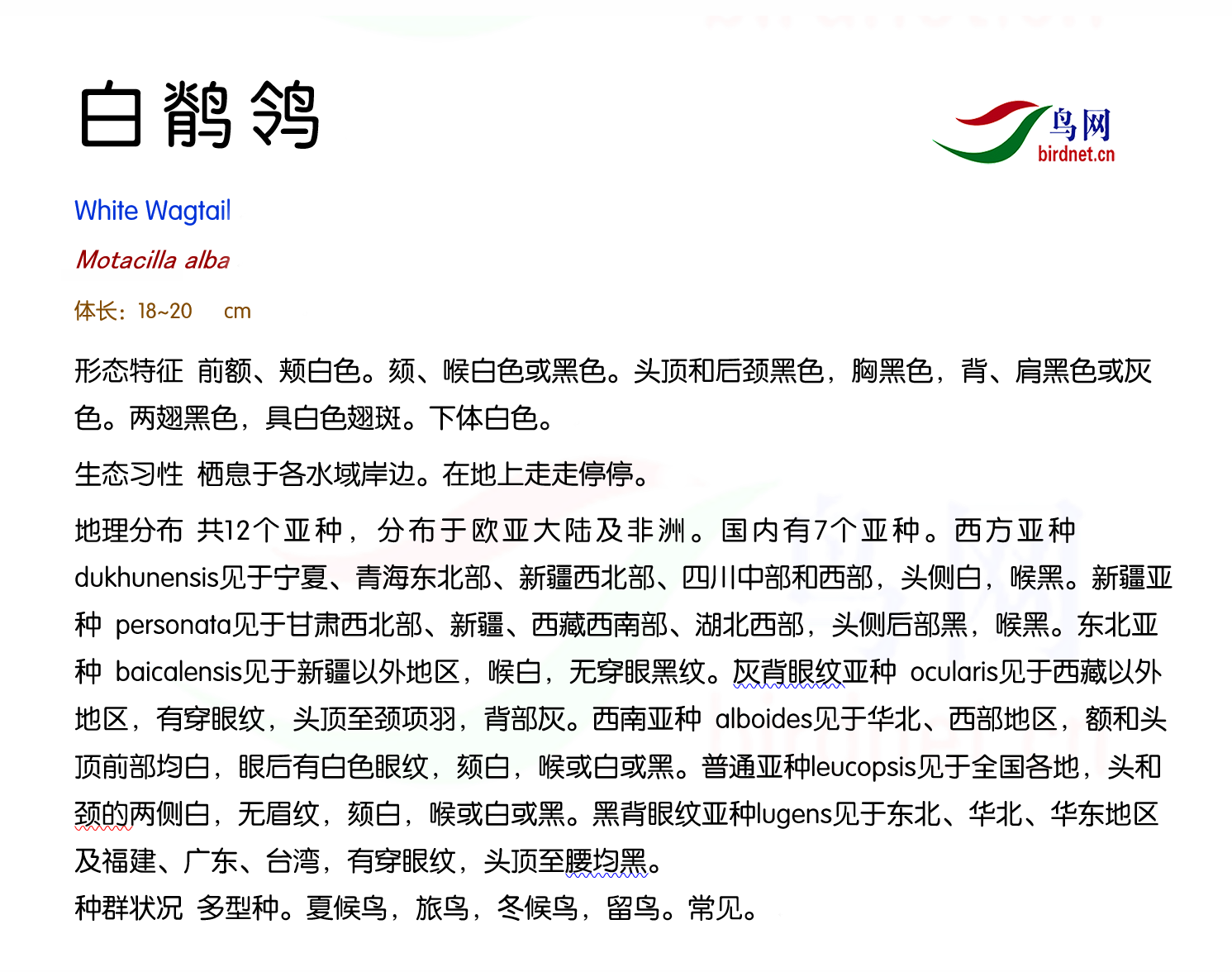 本页面展示的鸟种描述和分布图片等内容均来源于