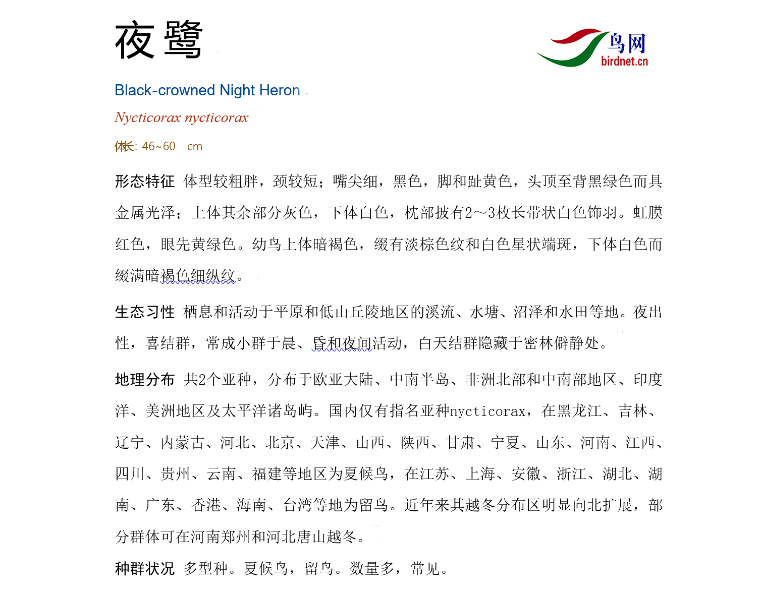 本页面展示的鸟种描述和分布图片等内容均来源于
