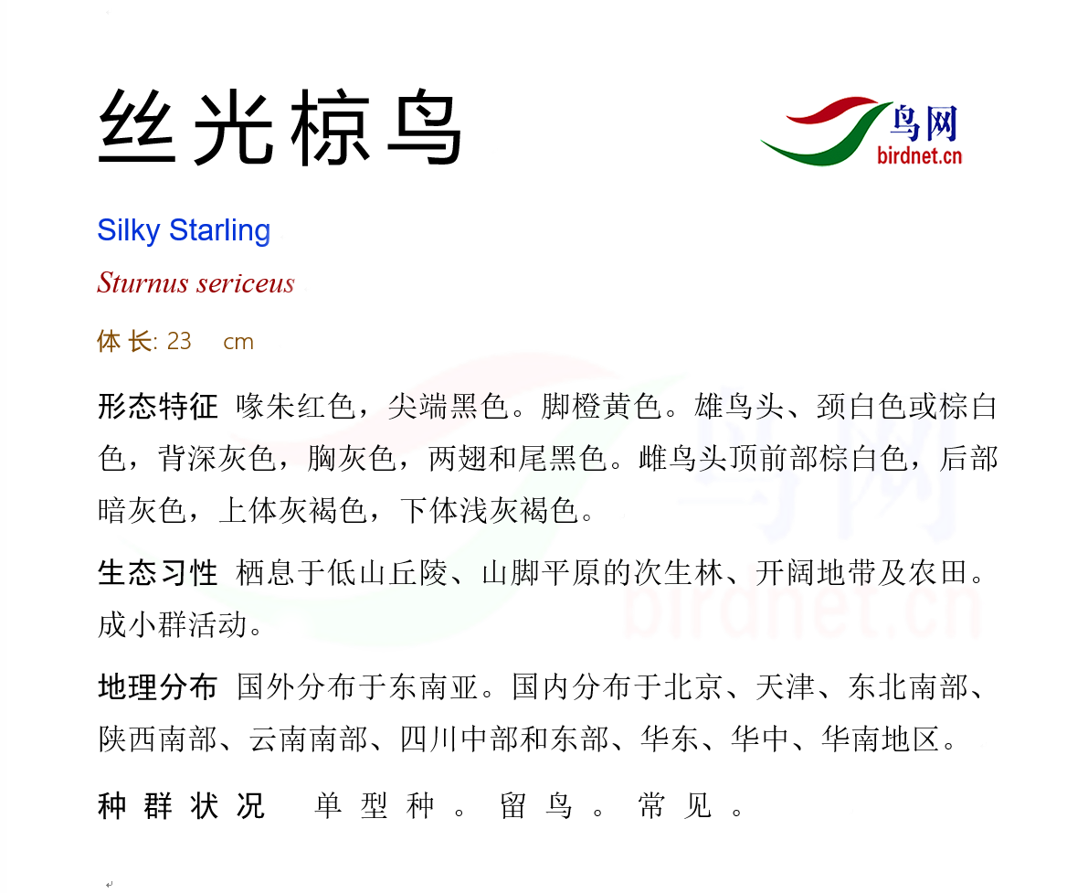 本页面展示的鸟种描述和分布图片等内容均来源于