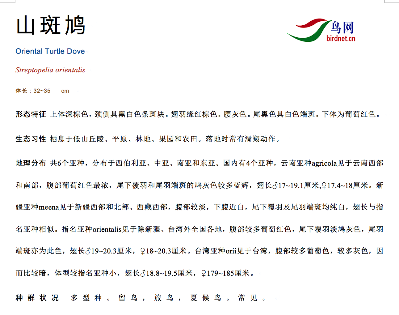 本页面展示的鸟种描述和分布图片等内容均来源于