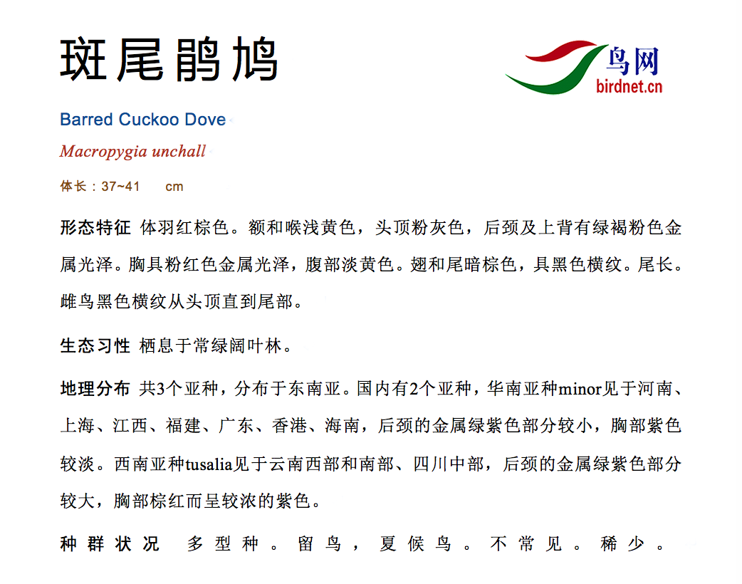本页面展示的鸟种描述和分布图片等内容均来源于