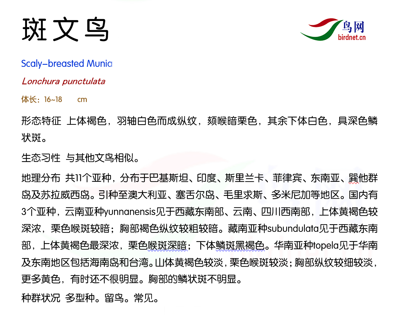 本页面展示的鸟种描述和分布图片等内容均来源于