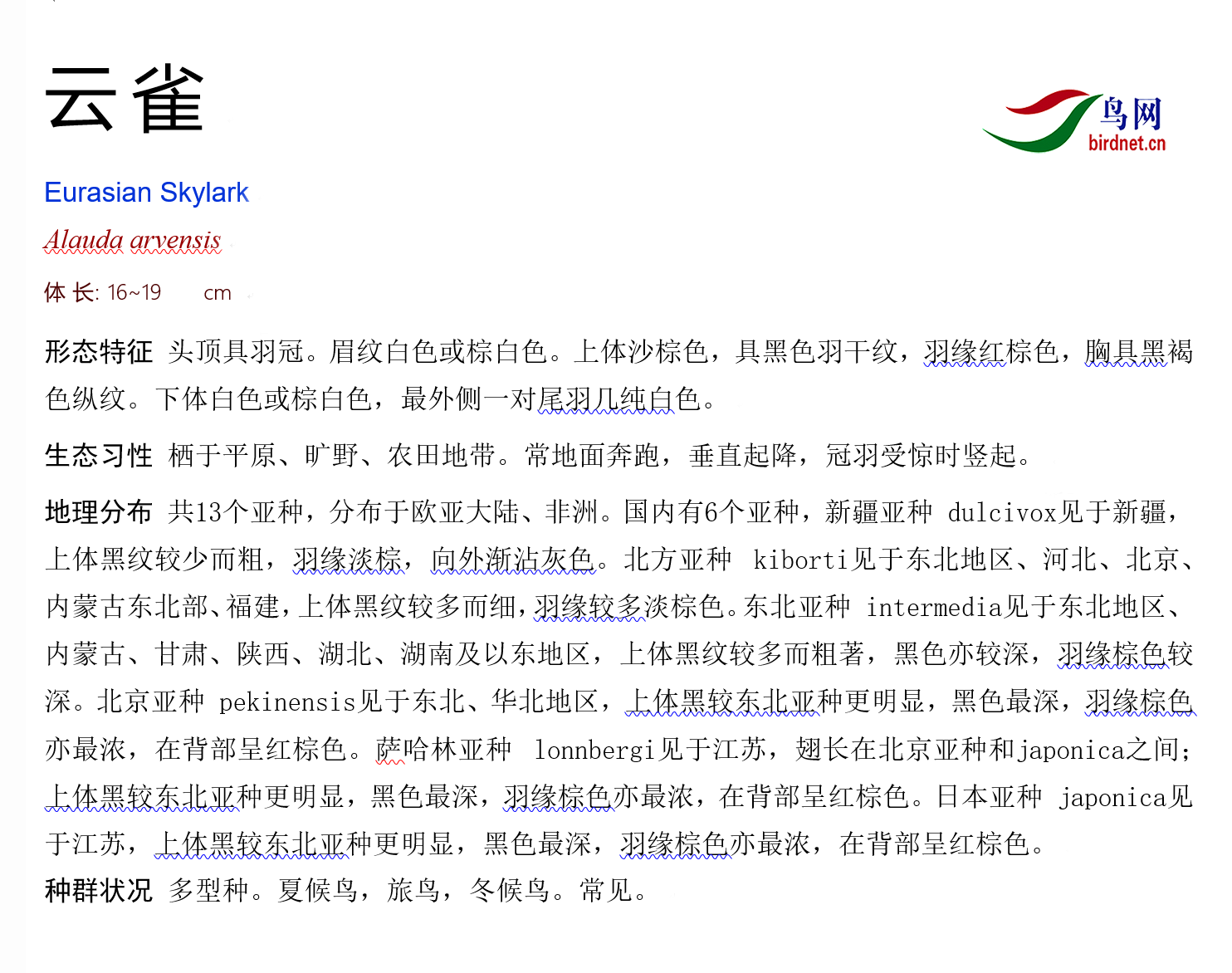 本页面展示的鸟种描述和分布图片等内容均来源于