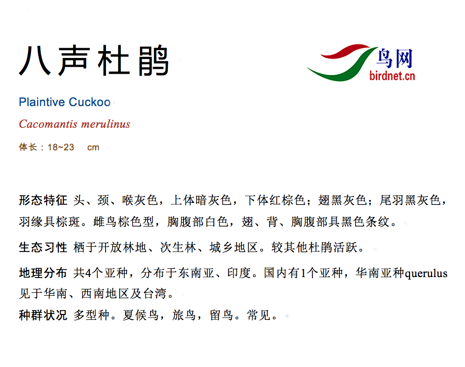 本页面展示的鸟种描述和分布图片等内容均来源于