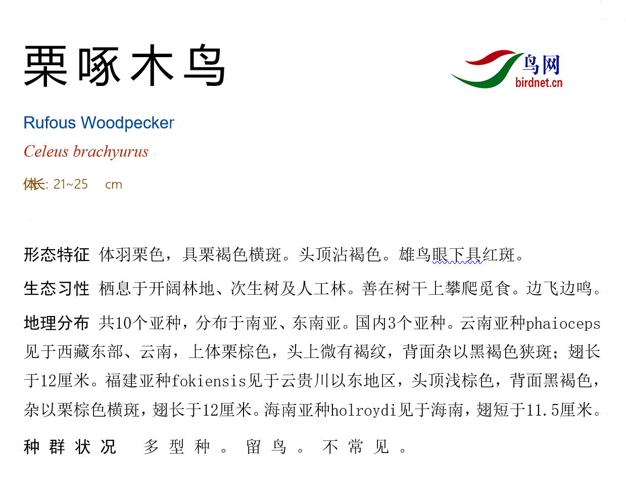 本页面展示的鸟种描述和分布图片等内容均来源于