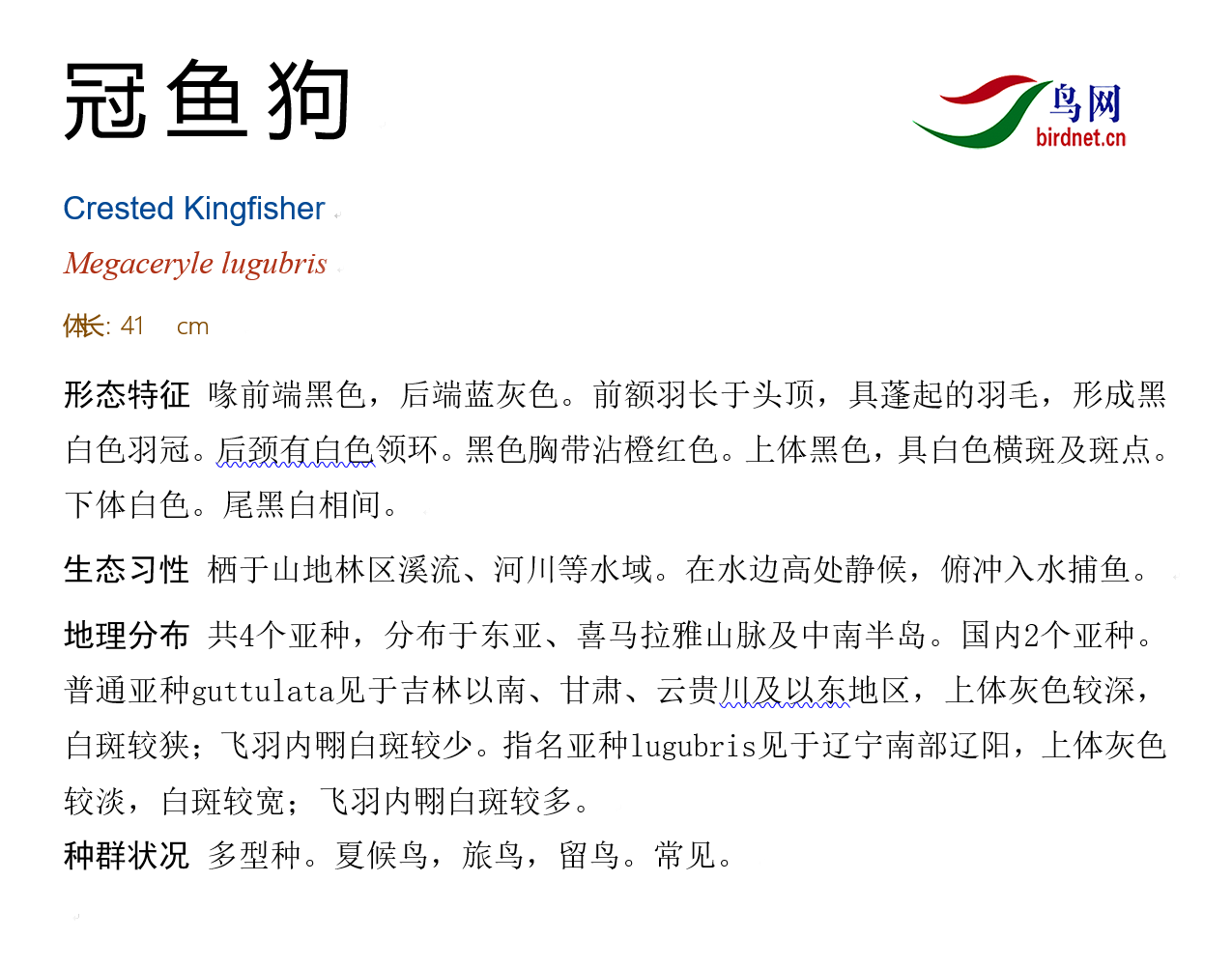本页面展示的鸟种描述和分布图片等内容均来源于