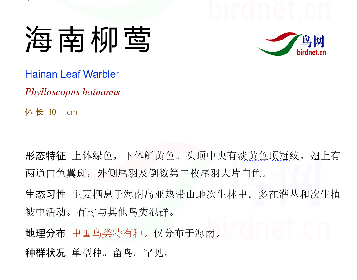 本页面展示的鸟种描述和分布图片等内容均来源于