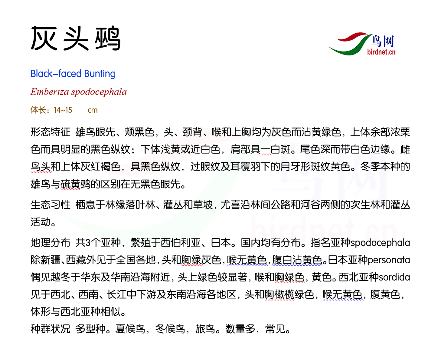 本页面展示的鸟种描述和分布图片等内容均来源于