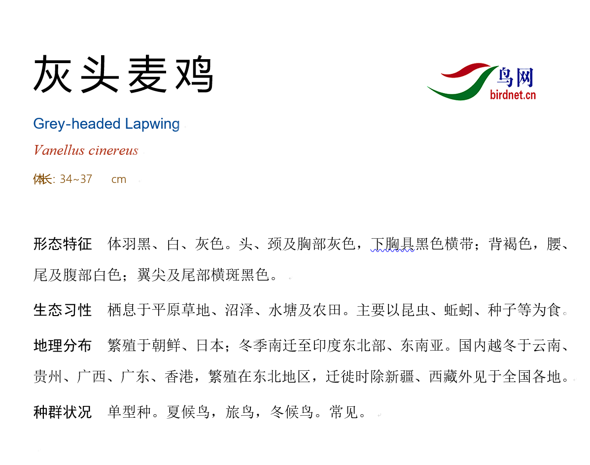 本页面展示的鸟种描述和分布图片等内容均来源于
